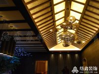 • 項目定位中式風格與現(xiàn)代情調(diào)的混搭,既要保留中式傳統(tǒng)風韻的雅致與古樸,也要體現(xiàn)現(xiàn)代生活的舒適與時尚。入口處眾多的中式設(shè)計元素讓人一踏人會所便能感受到整體的高貴與典雅,配合燈光的照明,全場窗格形式的圖案及各種弧形線條充分彰顯出古典莊重的視覺魅力。